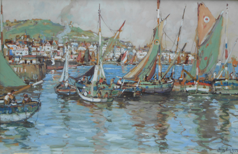 Kay arrived in Glasgow at a most auspicious time, and studied at the Glasgow School of Art when the Glasgow Boys were coming to prominence. He developed his own style and subject matter, following The Hague School and Dutch 17th Century Marine painters, but also, having lived and worked in Paris, he absorbed the atmosphere and influence of the French Impressionists which is evident in his city and landscapes. The end of the war made travel easier, and Kay travelled regularly, absorbing the sunshine and light of the Mediterranean. Whether he was painting in Paris, Palma, Glasgow or Copenhagen, he had a special personal ability to reflect the life and atmosphere of these places.