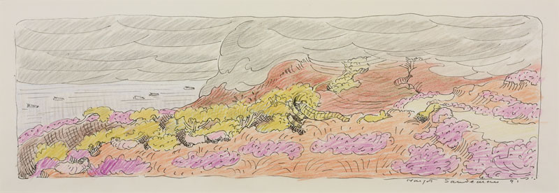 Gerber Fine Art is proud to present a solo exhibition by the artist Margot Sandeman, well known for her vivid landscapes of the West Coast and interior still lifes influenced by the Arts & Crafts tradition. She studied at Glasgow School of Art, together with the well known painter Joan Eardley, were they were two of a small group selected for special training by the Head of Drawing & Painting Hugh Adam Crawford. Both artists flourished under his experimental fast track treatment, and became close friends, developing a deep and lasting friendship. Although their styles were very different, they encouraged and supported each other, drew and painted together, and shared camping trips and family holidays. In 1941, as students, Sandeman and Eardley acquired a horse and caravan and travelled, sketched and painted around Loch Lomond. For many years, the two women regularly visited High Corrie on the Isle of Arran, renting an outhouse, "The Tabarnacle", as a studio. This exhibition features some of the delicate studies and drawings, works on paper, which she created there in preparation for her larger oils.