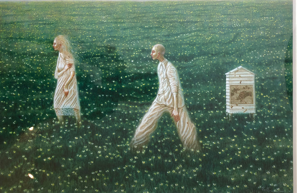 Throughout his work Peter quietly explores his own deep feelings, thoughts and responses to a wide range of contemporary issues. Drawing inspiration from his own conscience and political ideologies, reflecting on life events at home and his travels to the other side of the world, his paintings are often puzzling and intriguing.