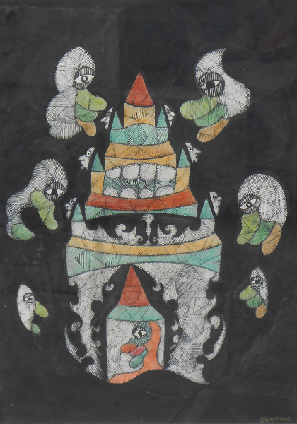 Scottie Wilson (6 June 1888 – 1972), born Louis Freeman, was a Scottish outsider artist known particularly for his highly detailed style. Starting his artistic career at the age of 44, his work was admired and collected by the likes of Jean Dubuffet and Pablo Picasso and is generally accepted to be in the forefront of 20th century outsider art.